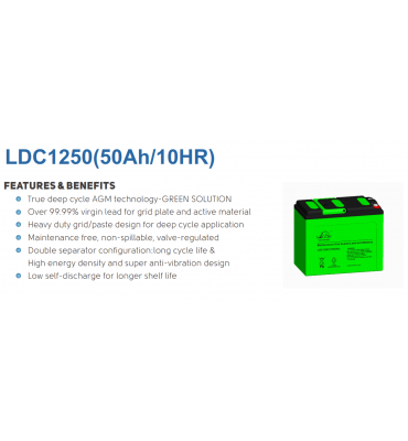 BATTERIE LEOCH LDC1250 - 12V 50Ah 10Hr  ELECTRIC VEHICULE